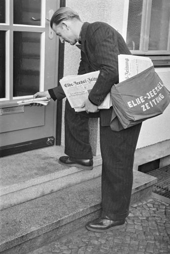 Das ist einer aus der großen Schar der Zeitungsboten, die dem Leser täglich schwarz auf weiß das Weltgeschehen ins Haus tragen. Man kann beinahe die Uhr nach ihnen stellen, so pünktlich ertönt das morgendliche Klappern am Briefkasten, die Türklingel oder der Ruf im Hausflur: „Zeiiituung!". Und dann hört man nur noch das Türenklappen und sieht vielleicht durch das Fenster, wie der Bote mit prallgefüllter Packtasche über die Straße läuft, immer in Eile, sein Blatt pünktlich an den Mann oder die Frau zu bringen. Sein Wirken ist so selbstverständlich wie das Schlagen der Turmuhr.