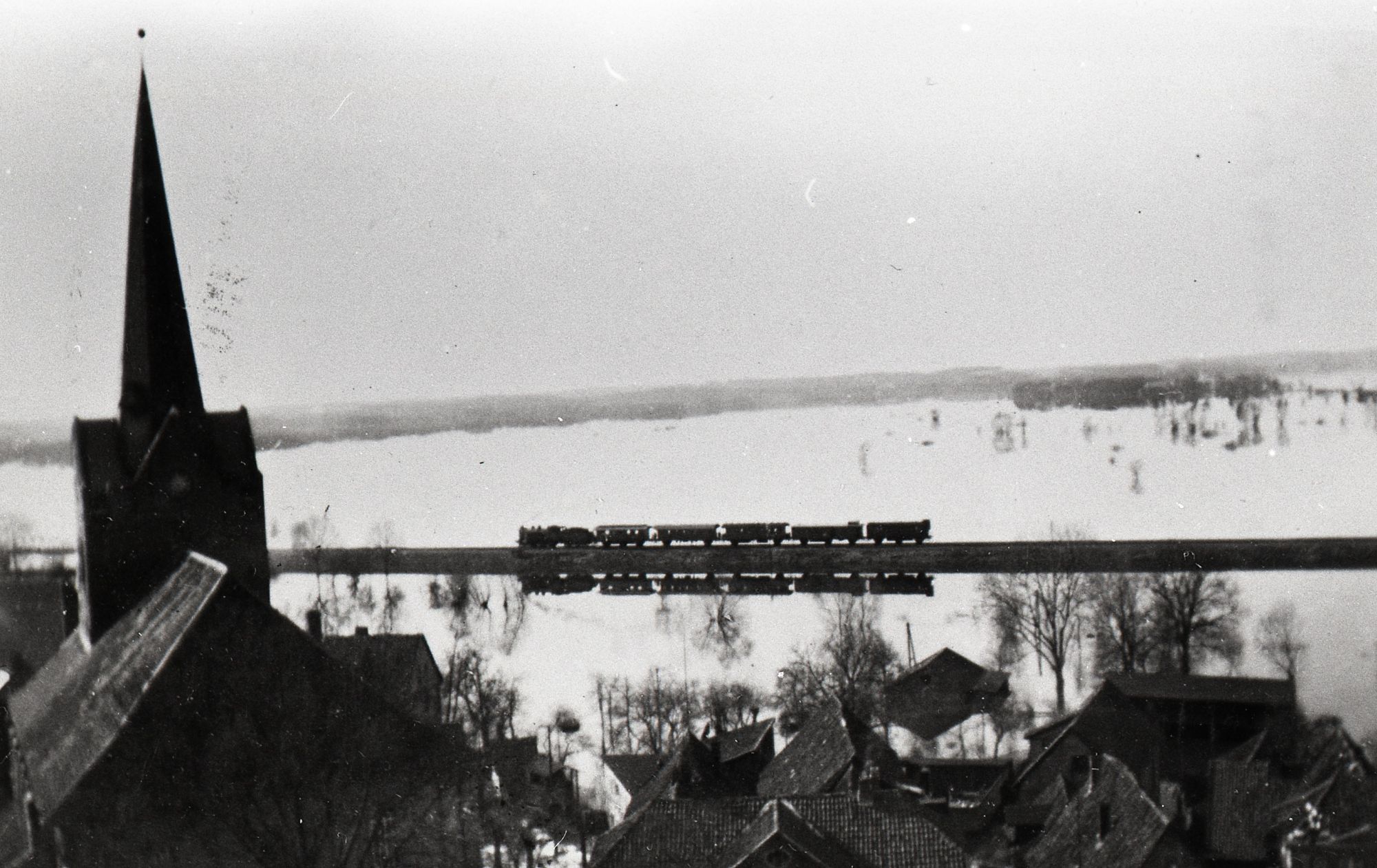 Eisenbahn • Hochwasser • Kirche (Bauwerk) • Landschaft