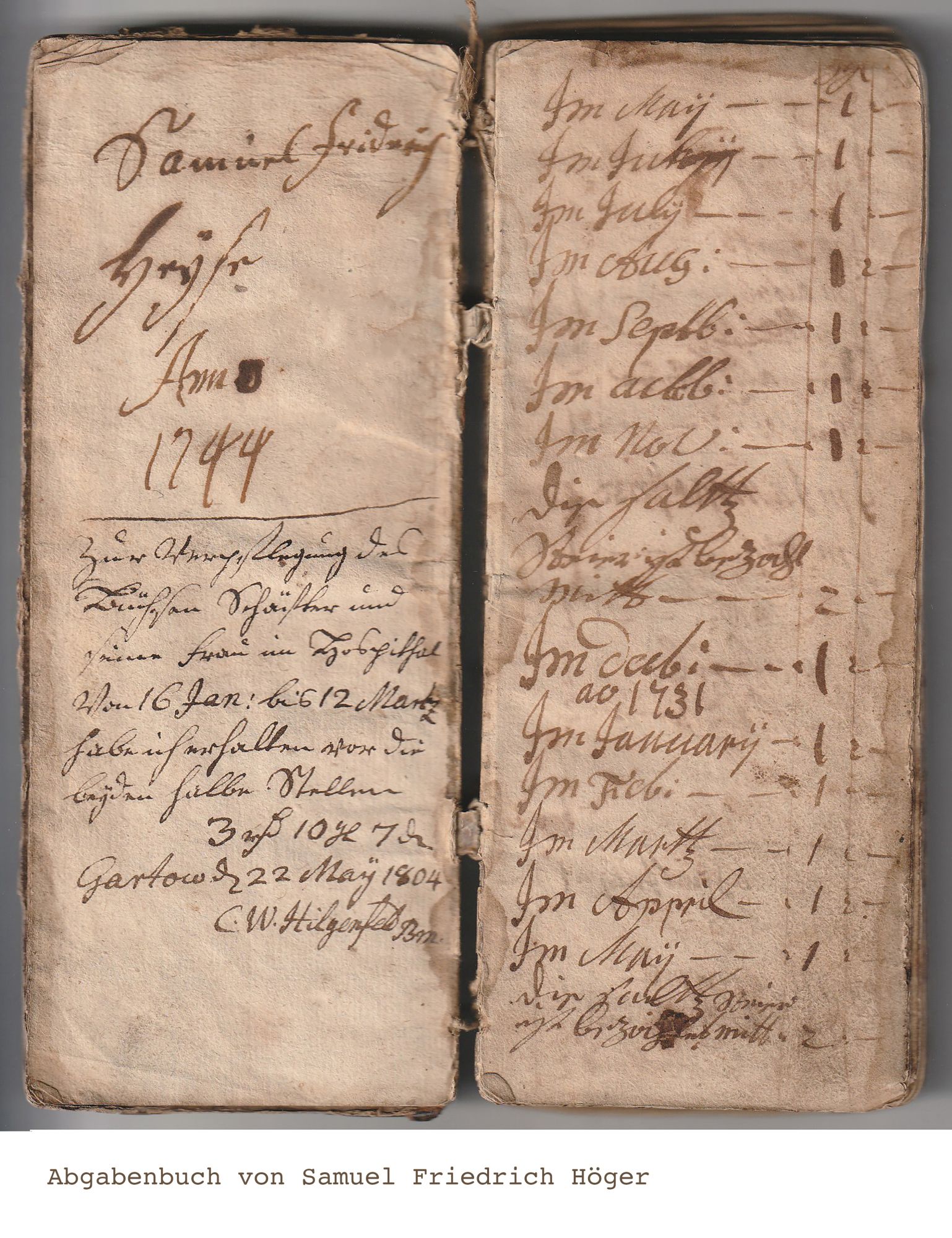 Ich denke, dieses dürfte das Abgabenbuch von Samuel Friedrich Heyse sein. Seine Witwe Barbara Elisabeth, geb. Bohlmann, heiratete erneut am 12.09.1767 den Bg.- und Rademachermeister Joachim Hartwig Höger.