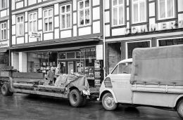 Wird mit dem Tieflader ein Tresor angeliefert? Sieht nach klein und sehr schwer aus. Dazu Fahrzeug aus Hamburg....